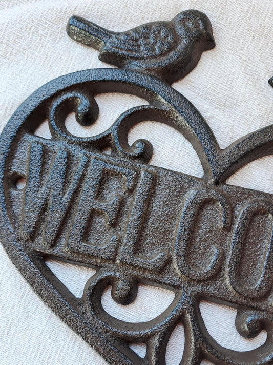 Cast Iron 'Welcome' Plaque with Love Birds