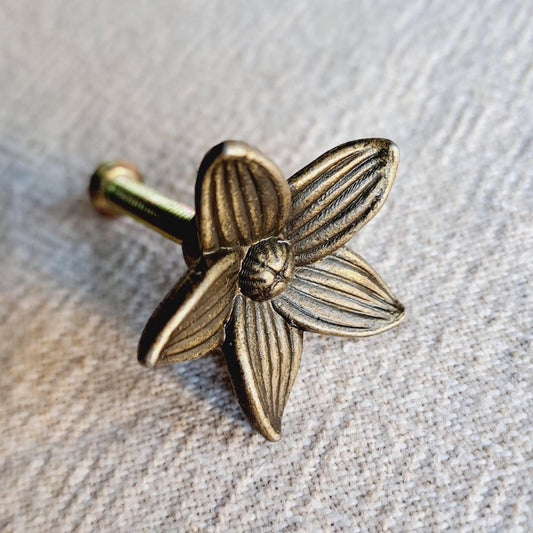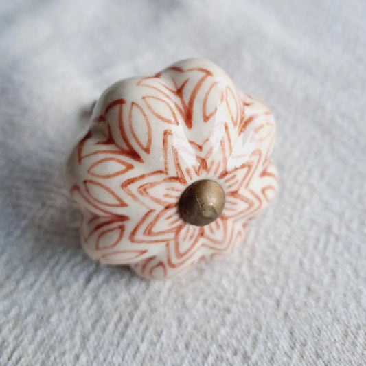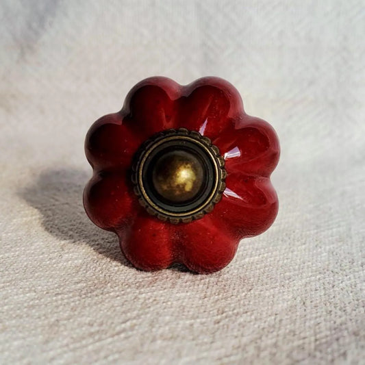 Ceramic Drawer Knob - Vintage Flower - Rusty Red Colour