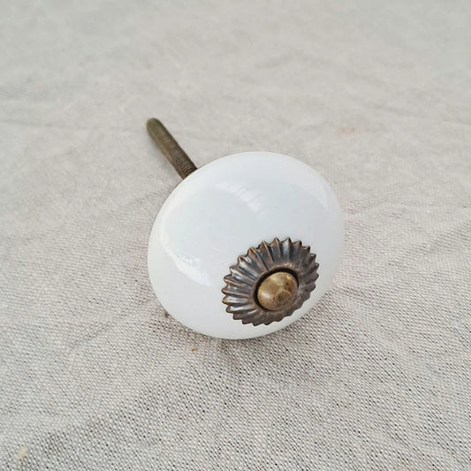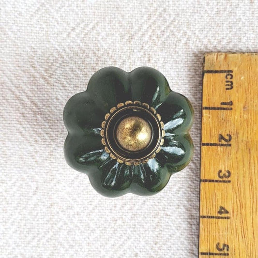 Green & White ‘Vintage Flower' Ceramic Drawer Knob with Brass