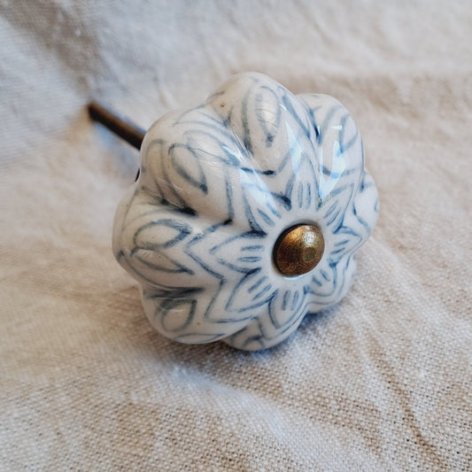 Blue & White Ceramic Drawer/Cabinet Knob - Vintage Floral
