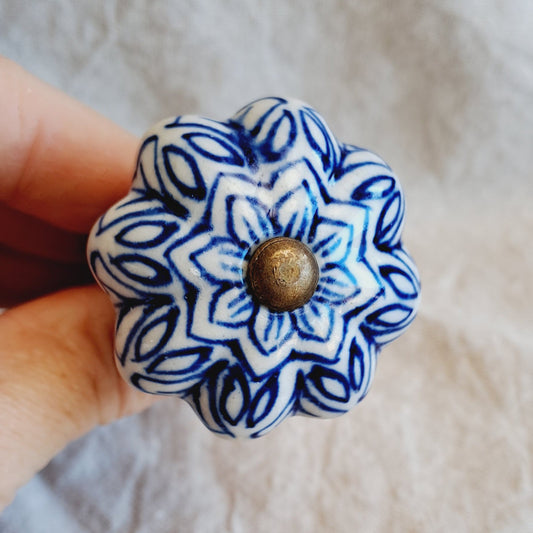 Blue & Brass Ceramic Knob