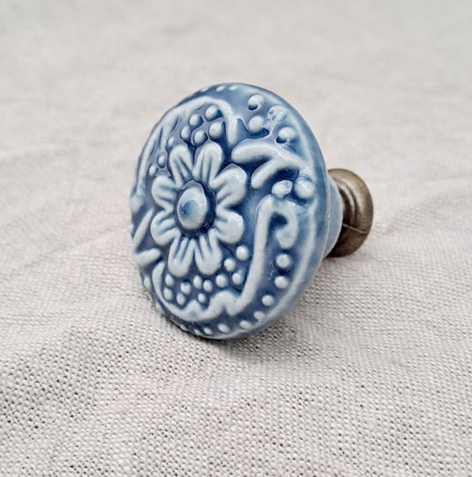 Blue Federation Flower - Ceramic Drawer/Cabinet Knob
