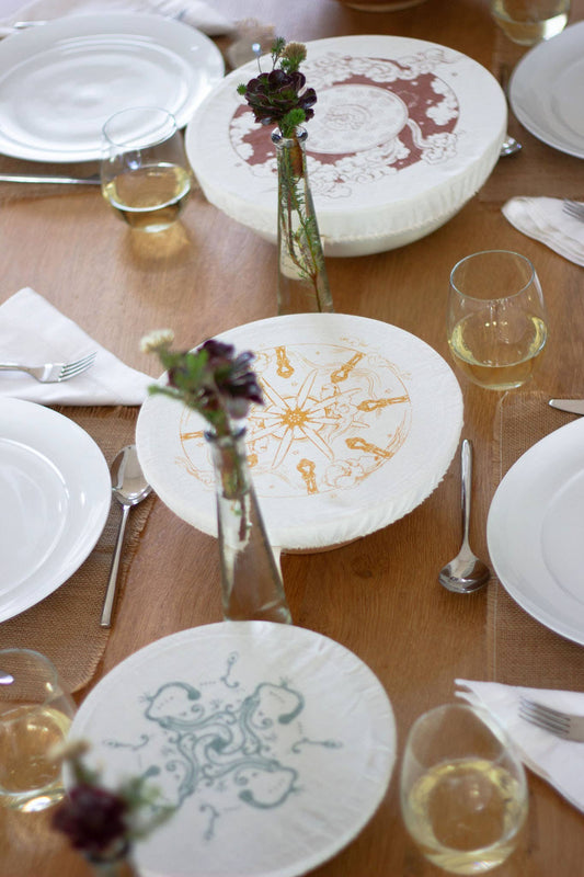 'Utensils' Design Bowl and Dish Covers - Large Set of 3 - 100% Cotton