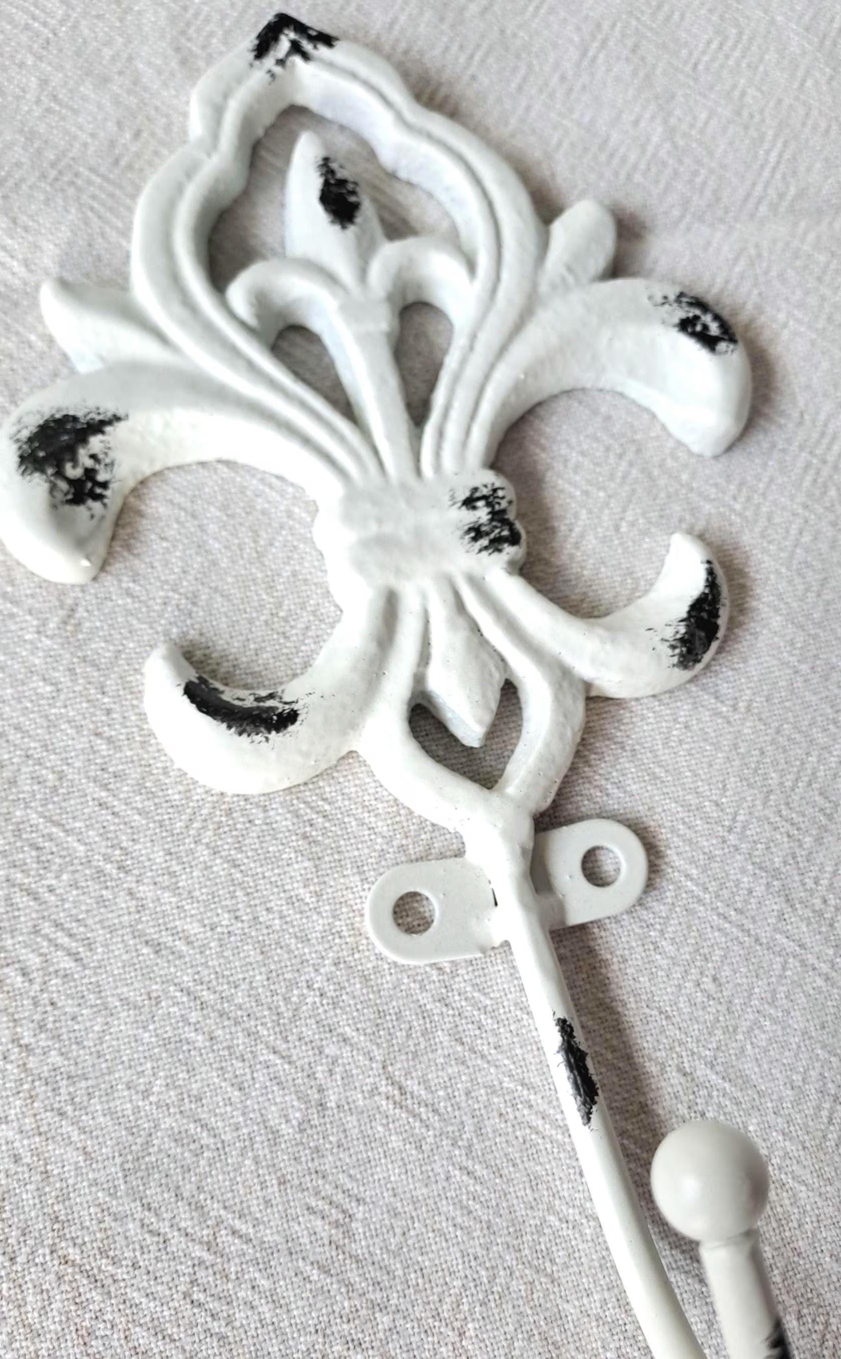 The fleur de lis, a timeless heraldic emblem representing elegance and refinement, takes functional form in this striking white hook. Rooted in centuries of decorative tradition, this stylized lily motif brings sophisticated European charm to any interior. Perfect for entryways, bathrooms, or bedrooms, it combines ornamental beauty with practical utility. The crisp white finish complements both contemporary and classic décor schemes, while the durable construction ensures reliable performance. An understated yet distinctive accent piece that elevates everyday storage into a statement of taste.